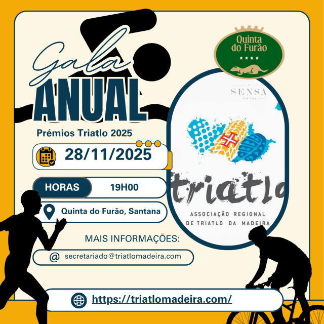 Dia 28/11/2025, pelas 19h00, Jantar e Gala Triatlo 2025, na Quinta do Furão, em Santana.